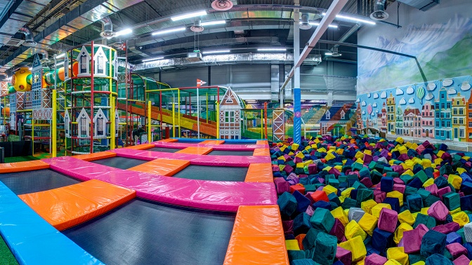 В распоряжении мальчиков и девочек находятся большой многоуровневый лабиринт, аттракцион «Авоська», поролоновая яма с мягкими разноцветными кубиками, сухой бассейн с яркими шарами и батутный комплекс. Можно покататься со скоростной горки на «ватрушке», заняться скалолазанием на скалодроме, проявить свою ловкость и выносливость в канатном парке.